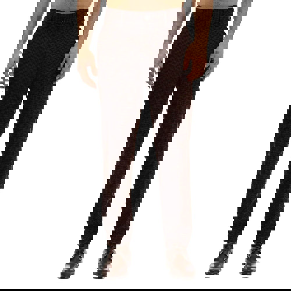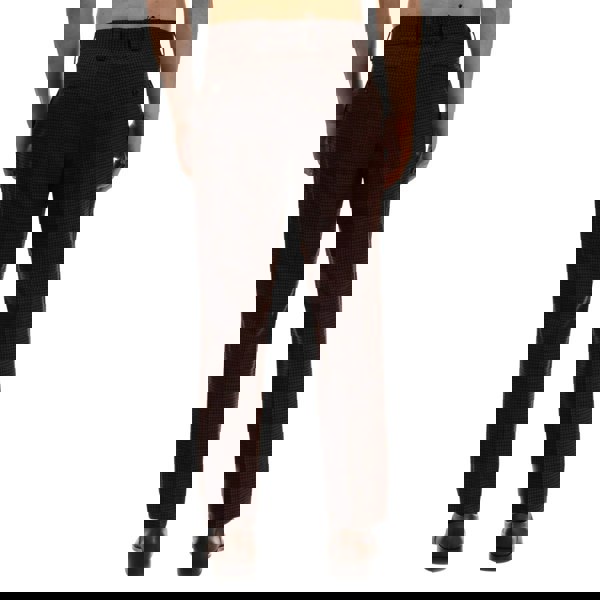 The fashion fit is balanced with practical storage, including two side pockets and two back pockets with buttoned closures. Suitable for everyday wear where a tailored look is required.