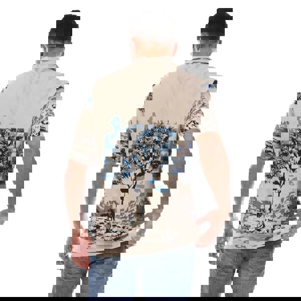 This beige shirt is made from 100% viscose and finished with an all-over printed design. A camp collar and short sleeves give it a relaxed, warm-weather look, while the button-down fastening keeps the front clean and classic.