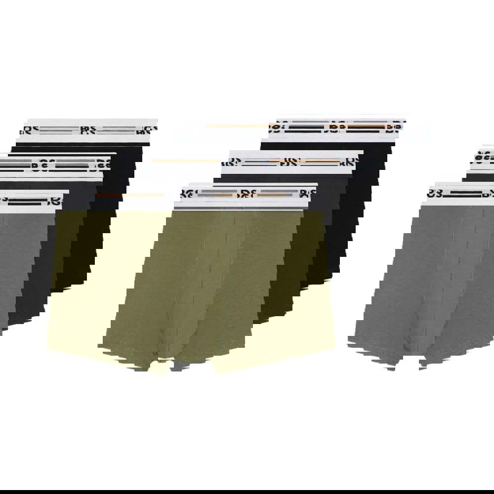 This pack of three men’s boxer shorts comes in a green, navy and black colour selection. Made from 95% viscose and 5% elastane, they combine a soft-touch feel with added stretch for everyday wear. The set includes plain, striped and logo designs, offering variation across the pack.