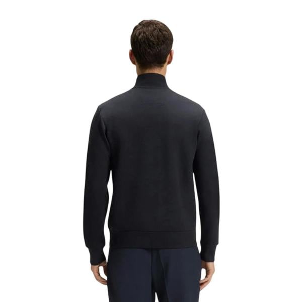 This full zip sweatshirt is made from 95% cotton and 5% elastane. It comes in dark blue with a logo design and a standing collar. Long sleeves and a regular fit keep the look clean and easy to wear for everyday layering.