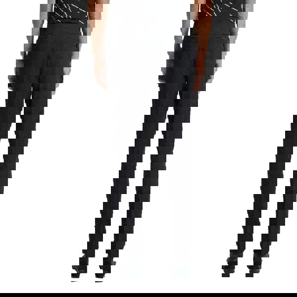 BOSS T Commuter trousers in dark blue with a plain finish and a regular fit. Made from a polyester and elastane blend with stretch and water-repellent fabric technology. The tapered leg creates a clean profile, while belt loops and an internal drawcord at the waistline offer flexible styling and adjustment. A button fastening and zip fly complete the front, and the pocket layout includes two front pockets plus two welted pockets at the back.