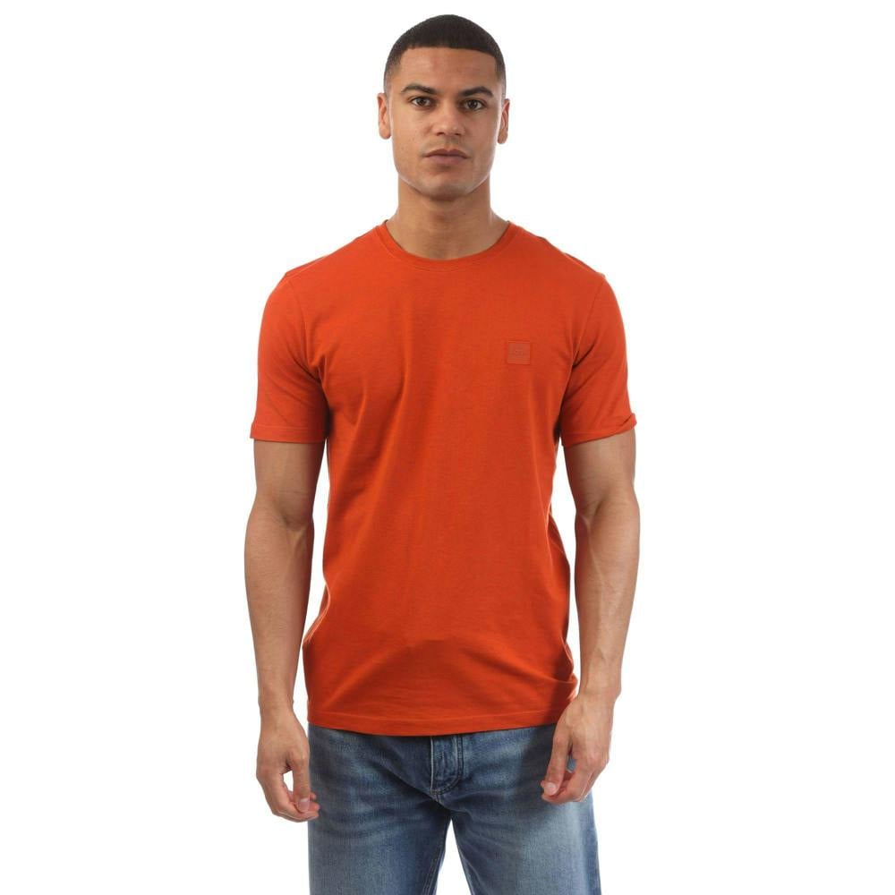 This men’s T-shirt comes in orange and is made from 100% cotton. The midweight jersey fabric has a soft-touch finish, making it a comfortable option for everyday wear. A crew neckline and short sleeves keep the silhouette classic and easy to layer.