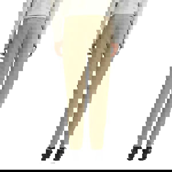 These men’s chinos come in a plain brown finish with a satin fabric. Made from 97% cotton and 3% elastane, they have a soft, stretch feel. The tapered fit creates a streamlined shape, while the button fastening and zip fly keep the look classic and practical.