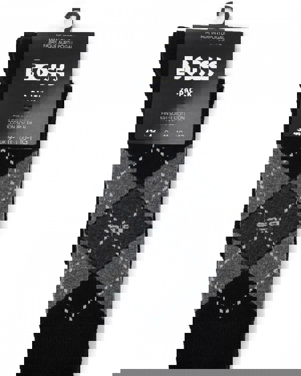 BOSS Orange 2 Pack Mens Combed Cotton Argyle Socks in Black 001