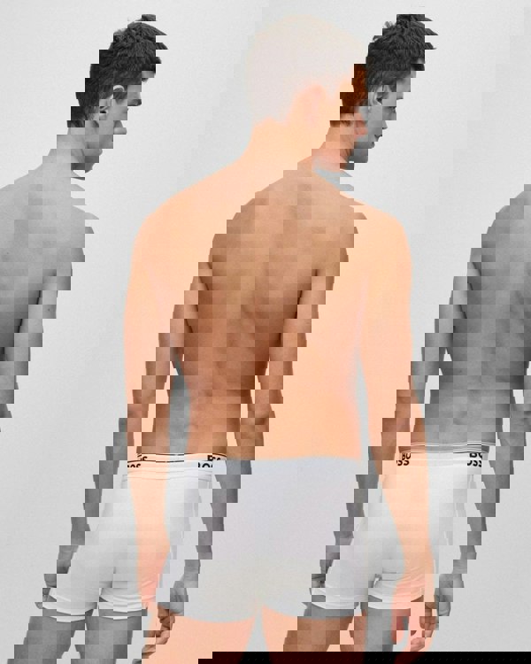 A trio of modern trunks by BOSS. Crafted in soft cotton blended with a touch of stretch for easy-wear appeal, these trunks are topped with a regular-rise waistband. A signature stripe and repeat BOSS branding complete the look.