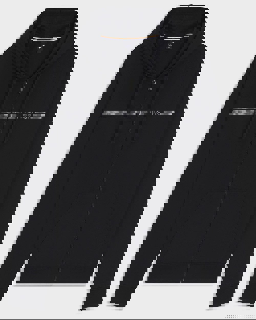 With a printed logo and stripe, this regular-fit BOSS Menswear jacket is ideal for elevating off-duty looks. Crafted in soft cotton terry.