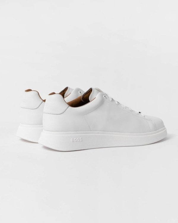 BOSS Orange Bulton Runn Mens Polished Leather Trainers With Rubber Outsole NOS in White 100