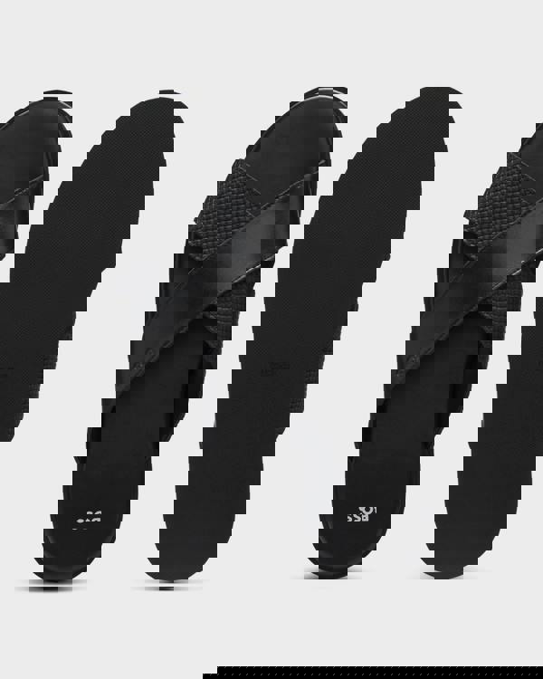 A refined warm-weather staple from BOSS Menswear, the Darrel slides bring a clean, modern look to off-duty dressing. Finished in black, this slip-on pair is embossed with a subtle logo and made in a mix of plain and patterned synthetic coated fabric for a tonal contrast across the straps.