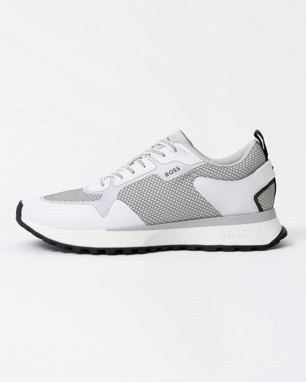 BOSS Orange Jonah Mixed-Material Trainers with Mesh Details and Branding in Open White 120