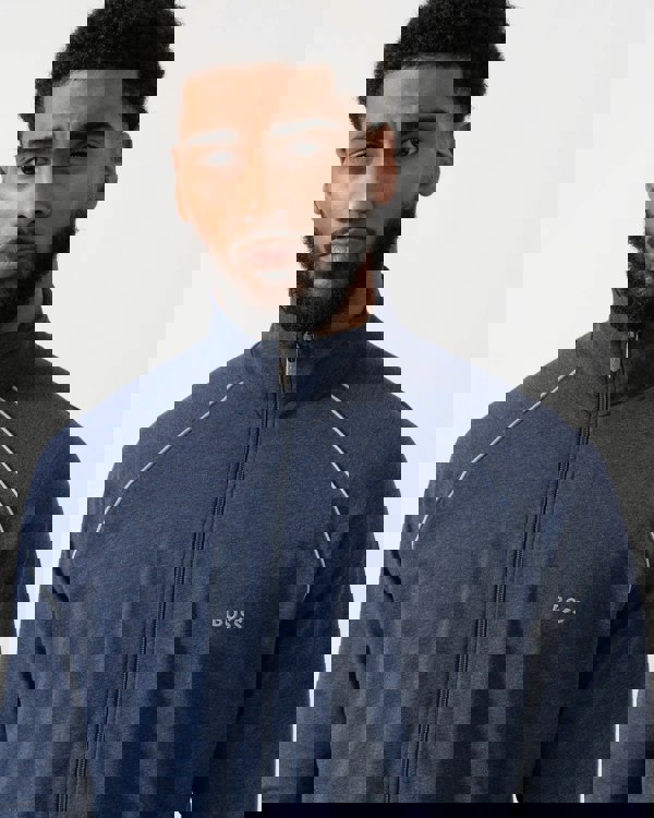 A zip-up jacket in a straight fit by BOSS Menswear. Featuring an embroidered logo and contrast piping, this piece is crafted in soft jersey. This product is partly made with organic cotton.