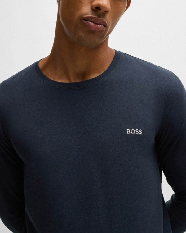 BOSS Orange Mix&Match Mens Long Sleeve Stretch-Cotton T-Shirt with Embroidered Logo  - Dark Blue 403
