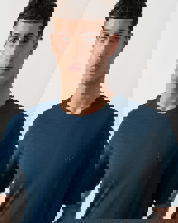 A signature T-shirt by BOSS. Featuring embroidered branding, this top is cut to a regular fit in soft single jersey. This product is partly made with organic cotton.