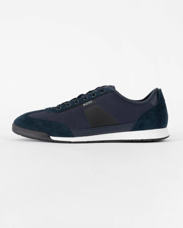 Sport-led and sharply finished, the BOSS Orange Nitan trainers from BOSS Menswear bring a modern edge to everyday looks. This dark blue pair combines a mixed-material upper with mesh trims, balanced by distinctive branding at the side, counter and tongue for a confident signature finish.