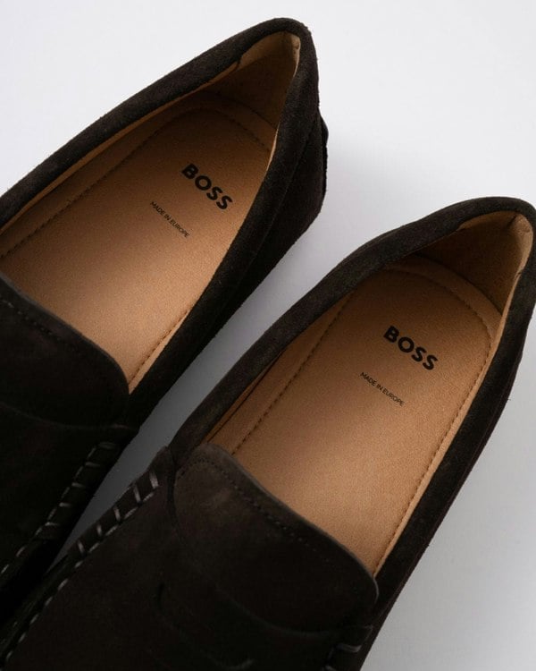 Discover designer mens shoes with BOSS Orange's Noel Mens Suede Driving Moccasins in Dark Brown 201