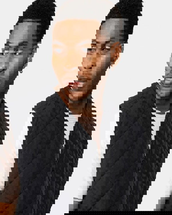 A slim-fitting gilet with diamond quilting, a water-repellent finish and hiking-inspired labelling by BOSS Menswear.