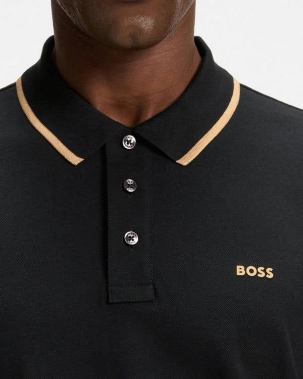 Featuring sporty tipping and matching branding, this BOSS Menswear polo shirt is crafted in breathable cotton piqué. Casual straight fit.