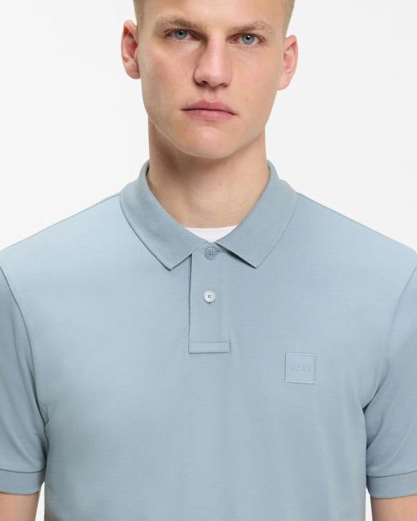 A clean, sporty staple for everyday wear, the BOSS Orange Passenger polo shirt brings a refined finish to casual dressing. Made from stretch-cotton piqué, it has a slim fit and short sleeves for a streamlined silhouette. A woven logo patch adds a subtle branded detail, while the flat-knit collar and matching cuffs keep the look crisp.