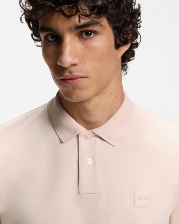 A clean, sporty staple for everyday wear, the BOSS Orange Passenger polo shirt brings a refined finish to casual looks. Made in stretch-cotton piqué, it has a slim fit and short sleeves for a streamlined silhouette. A woven logo patch adds a subtle branded detail, while the flat-knit collar and cuffs keep the profile neat.