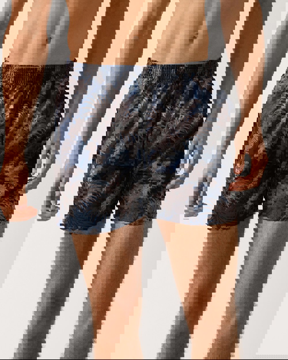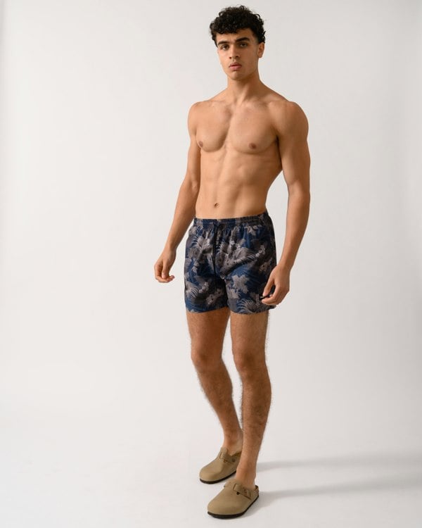 BOSS Orange Piranha Mens Tropical Print Quick-Drying Swim Shorts in Medium Brown 210