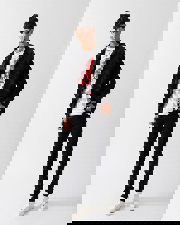 Regular-rise jeans cut to a straight fit in stay-black comfort-stretch denim by BOSS Menswear.