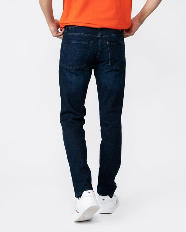Regular-fit jeans cut with a tapered leg in dark-blue comfort-stretch denim featuring subtle used effects by BOSS Menswear.