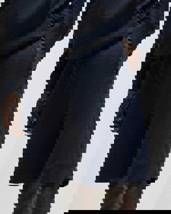 BOSS Orange Sewalk Mens Cotton-Terry Shorts With Logo Badge in Dark Blue 404