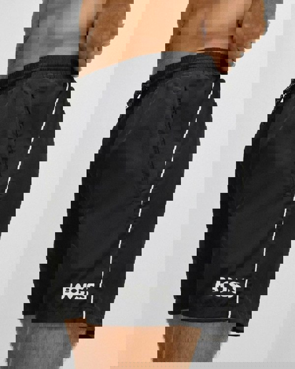 Straight-leg swim shorts in quick-dry material by BOSS. This fully lined pair has a drawstring waist and contrasting details including a logo print. This product is created with recycled polyester.