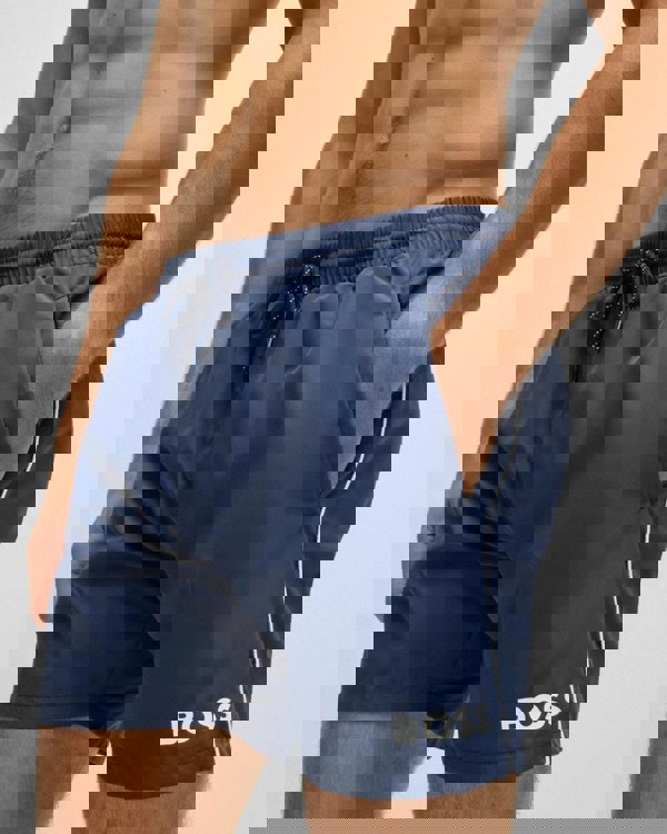 Straight-leg swim shorts in quick-dry material by BOSS. This fully lined pair has a drawstring waist and contrasting details including a logo print. This product is created with recycled polyester.