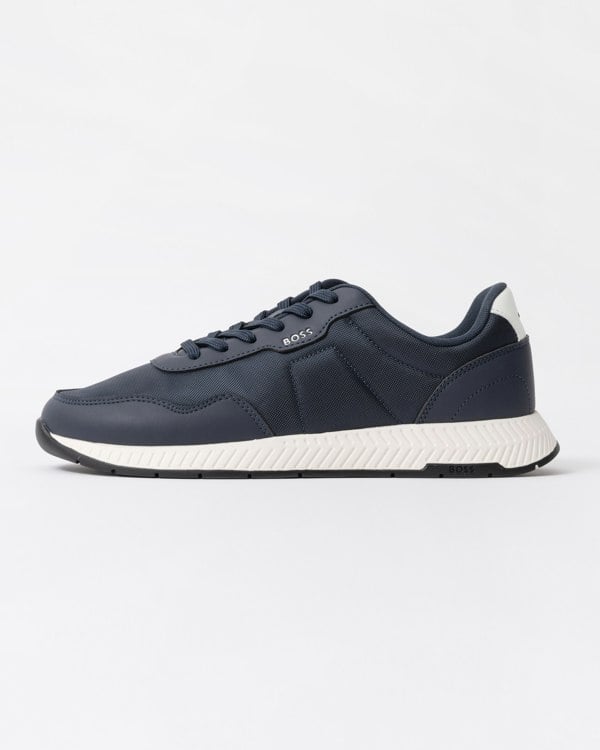 Featuring logo details and signature-stripe stitching, these BOSS Menswear trainers add a distinctive touch to everyday looks. Mixed uppers in textured and smooth fabrics.