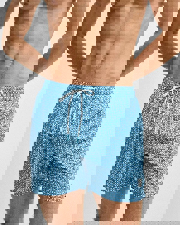BOSS Orange Vibe Mens Logo-Label Swim Shorts with Seasonal Pattern in Light/Pastel Blue 455