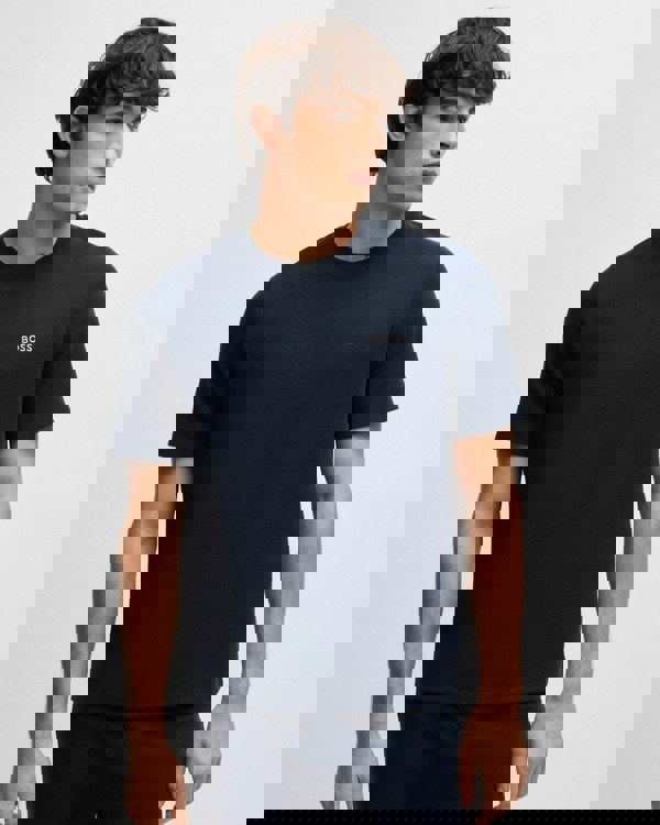 BOSS Orange Waffle Mens Cotton-Blend Pyjama T-Shirt with Embroidered Logo NOS in Dark Blue 403