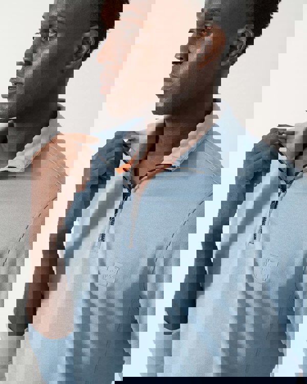 A masculine sweatshirt by BOSS Menswear. Featuring a tonal logo patch at the left chest, this signature sweatshirt is cut to a regular fit in French terry and topped with a zipped neckline.