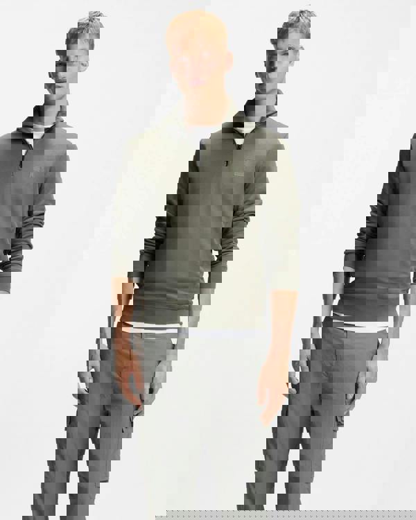 A masculine sweatshirt by BOSS Menswear. Featuring a tonal logo patch at the left chest, this signature sweatshirt is cut to a regular fit in French terry and topped with a zipped neckline.