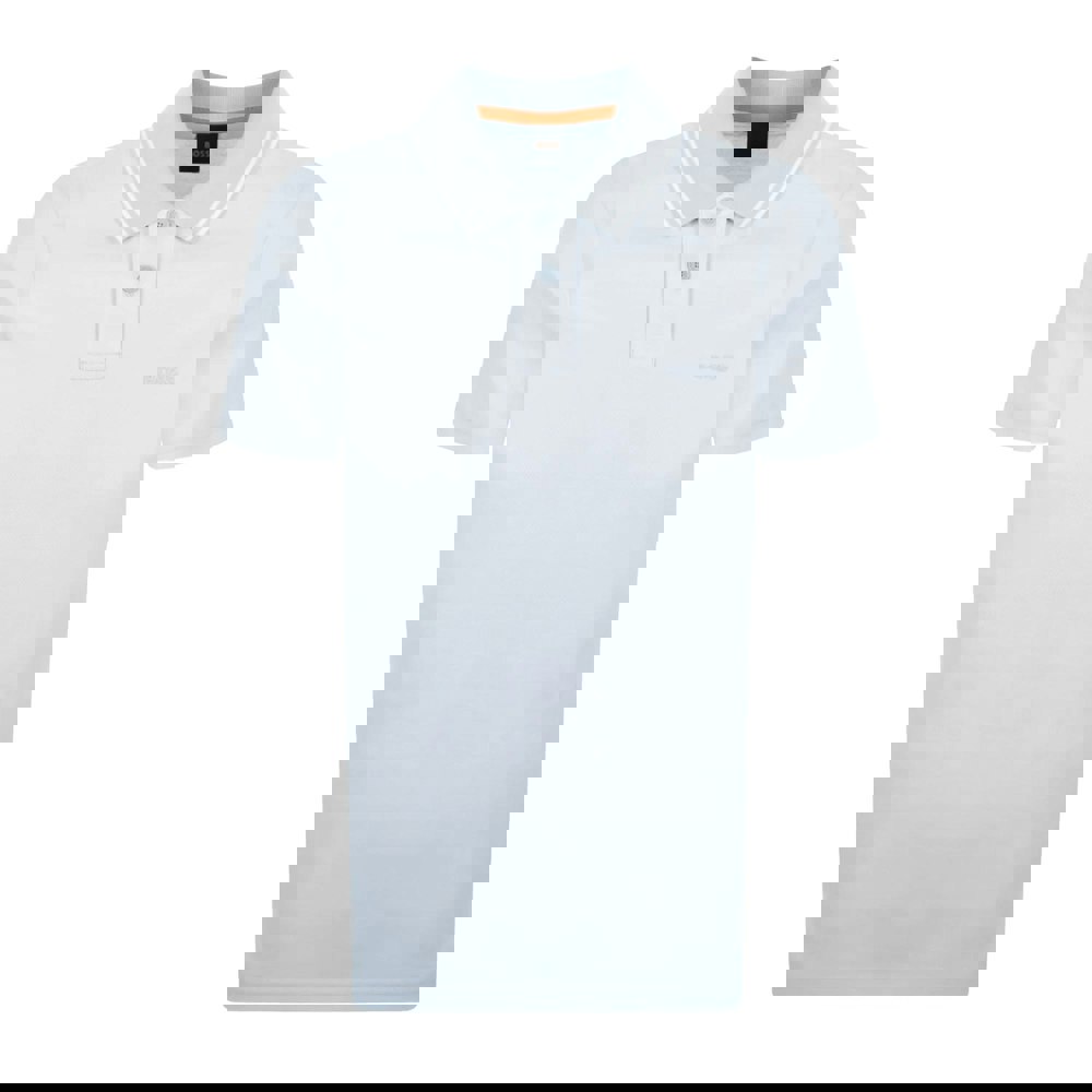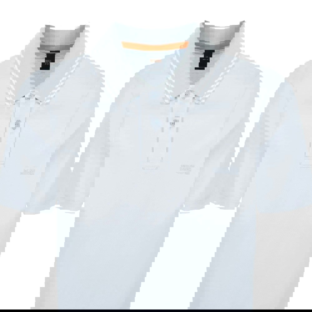 Expertly designed BOSS Relaxed Fit Oxford Piqué New Polo Shirt in Light Pastel Grey features premium Oxford piqué cotton construction with a comfortable relaxed silhouette. Distinguished by its elegant tipped collar, short sleeves, and signature BOSS chest emblem, this refined casual essential delivers sophisticated style.