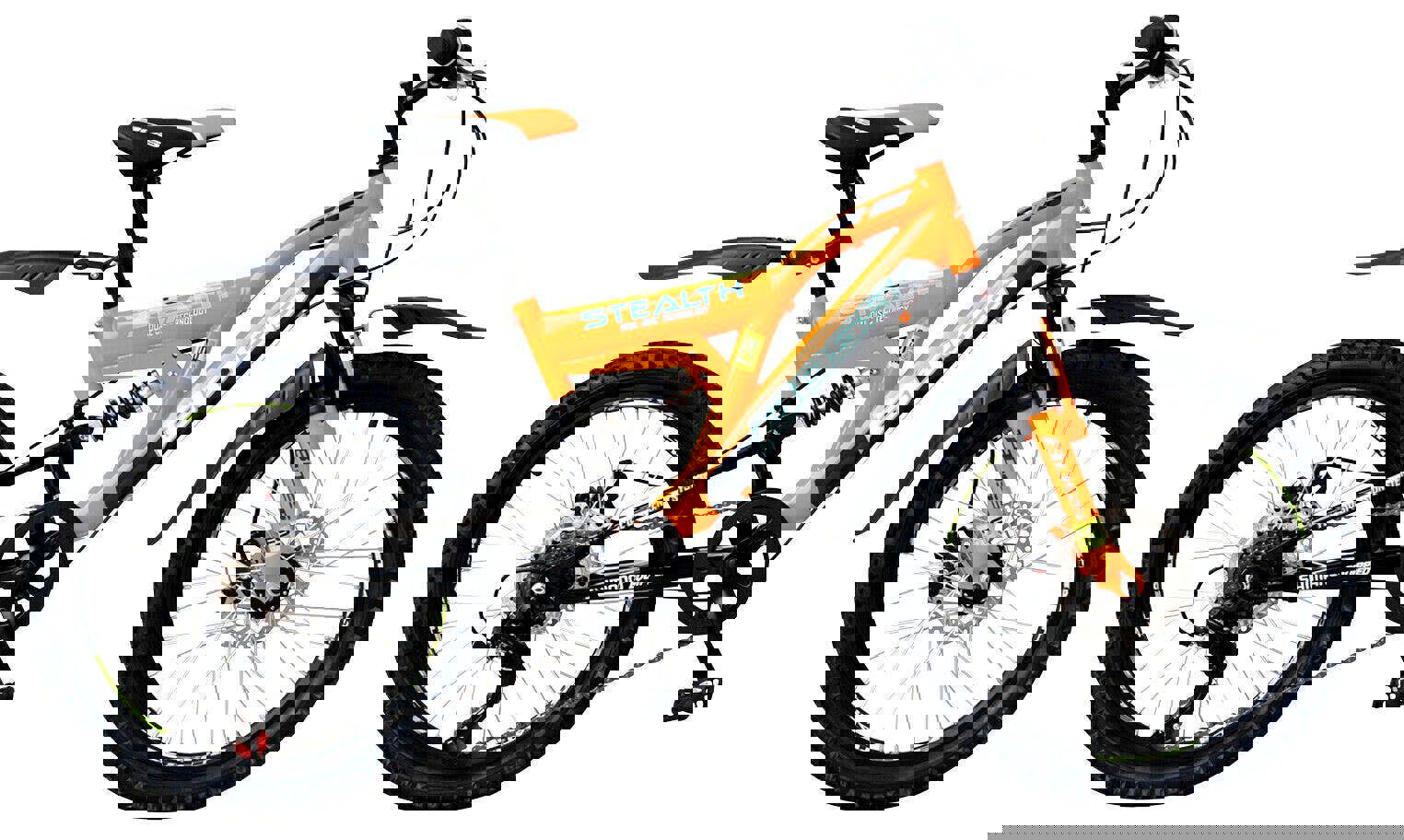 The Spec Speaks For Itself 6 Speed Shimano Gearing, Front And Rear Disc Brakes And Dual Mudguards Give You The Kit Needed To Tackle Any Terrain, Whilst Front And Rear Suspension Make For A Comfortable Ride And Soak Up The Bumps. Deep Section Wheel Rims, Off-Road Mtb Tyres And Strong Disc Hubs Make The Wheels Strong And Sturdy Whilst Grippy 1. 95 Tyres Will Pull You Through Anything. The Rear Suspension Unit Can Be Adjusted To Dial-In The Required Amount Of Suspension, Whilst The Front Suspension Fork Remains In Action At All Times, Poised And Ready To Take Whatever Is Thrown At It. Stand Out In The Crowd, Be Understated But Be Bold. The Stealth Has It All!