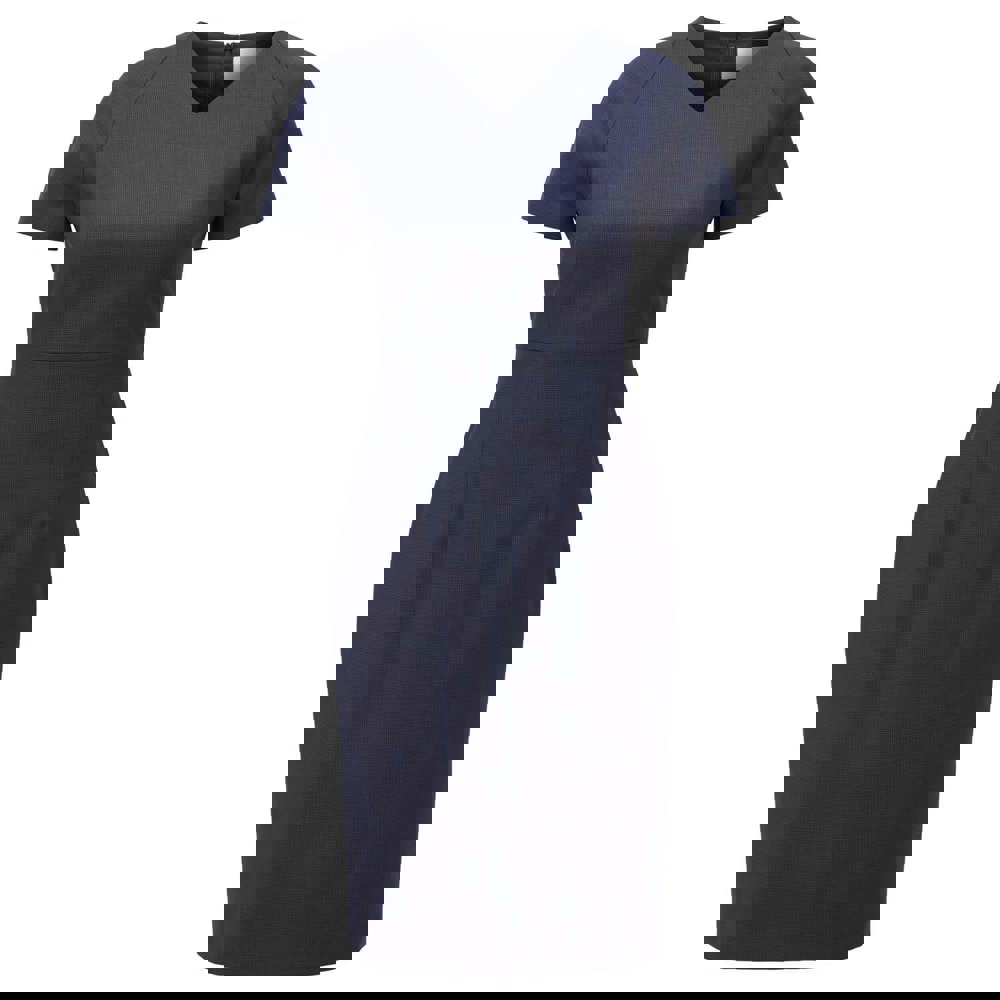 Boss Deitua dress in navy wool with a plain finish. Cut to a midi length, it has a V-neckline and short raglan sleeves for a clean, streamlined look. A back zip fastening keeps the silhouette neat and provides a secure closure.