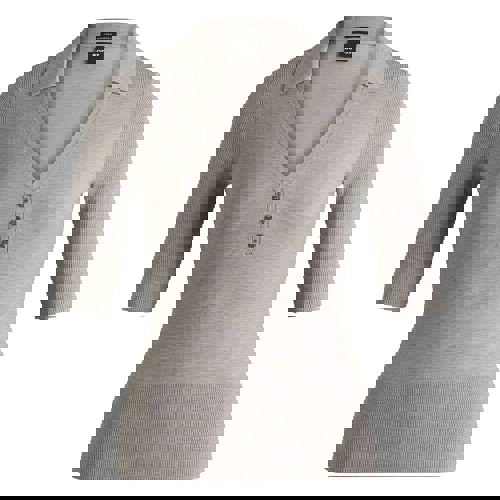 Made from a blend of 79% virgin wool, 18% polyamide and 3% elastane, this grey sweater top offers a clean, plain finish. The half-sleeved silhouette is balanced with fitted cuffs and a fitted hem for a neat outline, making it a practical option for everyday wear.