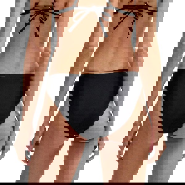 These bikini bottoms have a plain black finish with a charm and logo detail. They are lined and pull on for a clean, simple look. An elasticated waistline provides a secure, flexible feel.