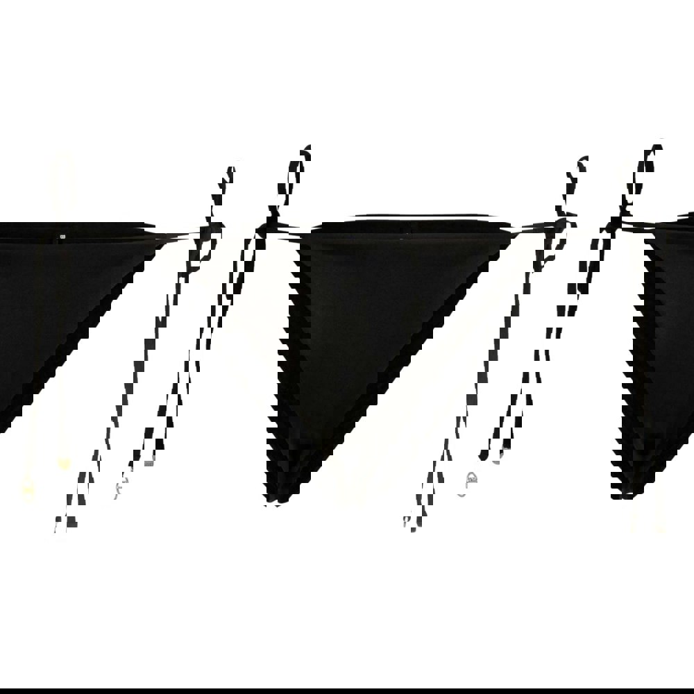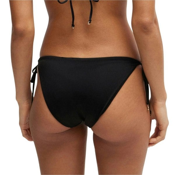 These bikini bottoms are made with a stretch outer and a regular fit for a clean, simple look. The plain black design is finished with logo detailing and a charm accent, keeping the styling minimal while adding a distinctive touch.