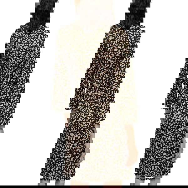 This multicoloured dress has an animal print design with a V neck and 3/4 sleeves. A gathered waist adds shape through the middle, creating a defined silhouette while keeping the look clean and easy to wear.