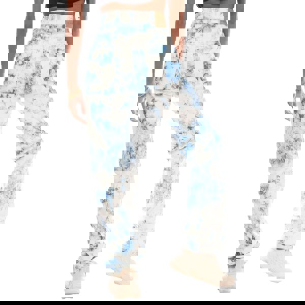 These cropped straight jeans are made from 98% cotton and 2% elastane. The design combines a logo detail with a tie dye finish in white and blue, creating a distinctive look for everyday wear.