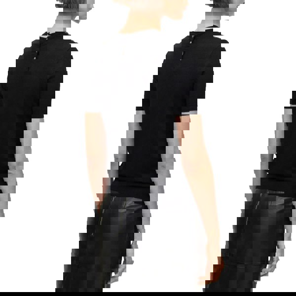 A 3-button placket adds structure at the front, with a neck back button and pull-on fastening for easy wear. Finished in black, it works well as a standalone knit top or layered under outerwear.
