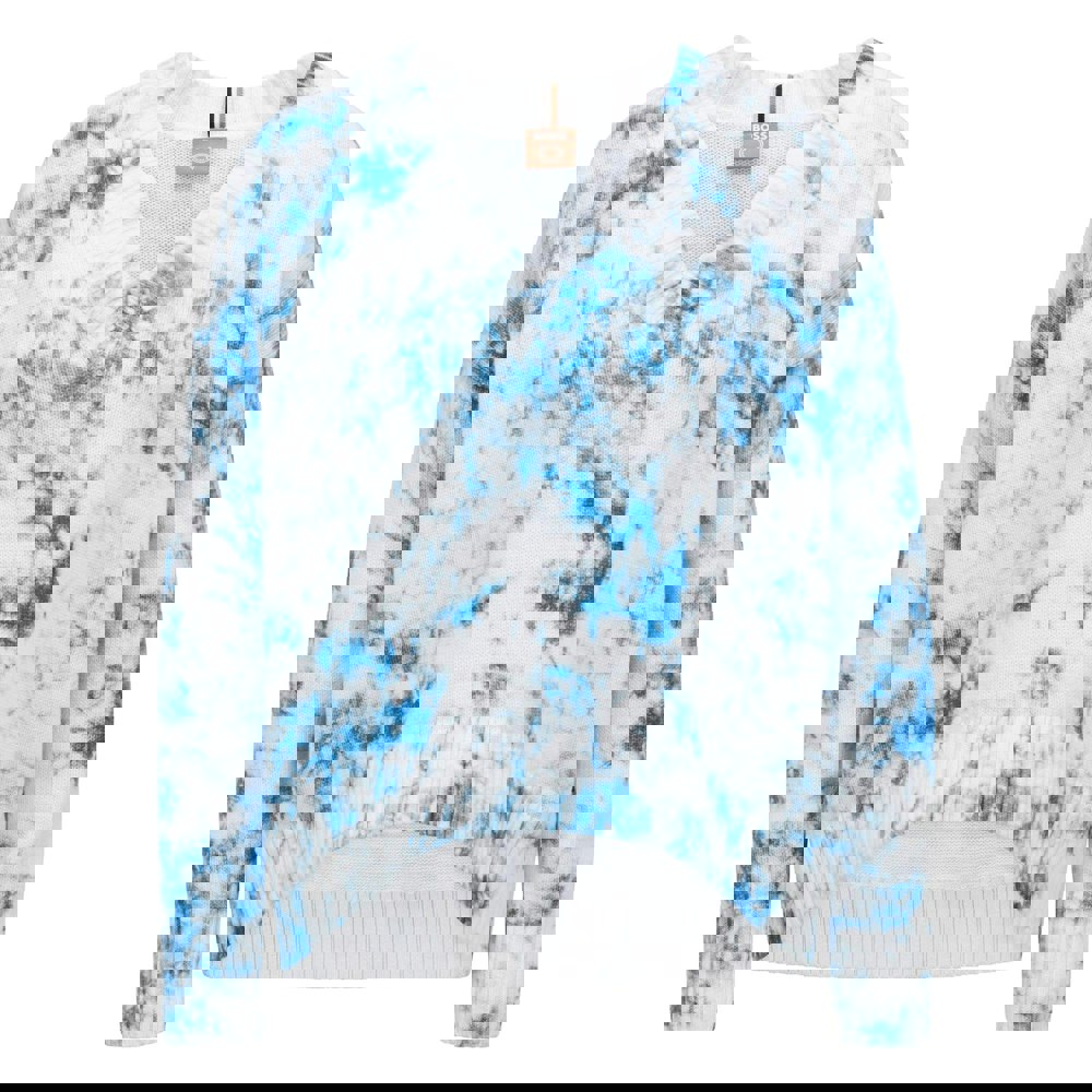 This women’s sweater top is made from 100% cotton and finished in a white and blue tie-dye design. A ribbed V-neckline and pull-over fastening keep the look clean and easy to wear, while the long sleeves are set with a drop shoulder for a relaxed silhouette.