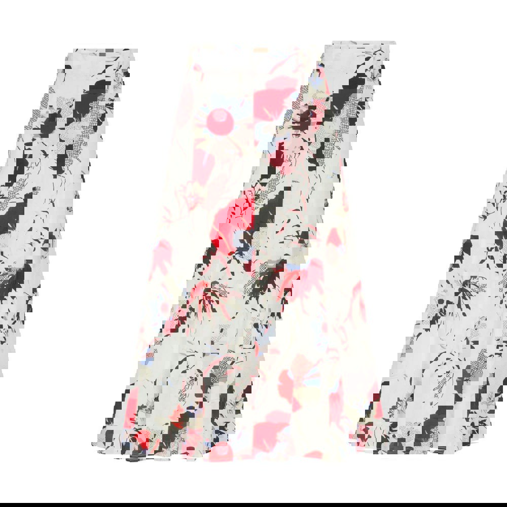 This midi skirt is made from 100% viscose and finished with a floral patterned design in off white, red and blue. A high waist and regular fit create a clean silhouette, while the midi length offers easy wear for everyday styling.