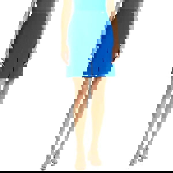This mini skirt is made from a blend of 61% recycled polyester, 26% viscose, 7% cotton and 6% elastane. It comes in blue with a plain finish for a clean, understated look.