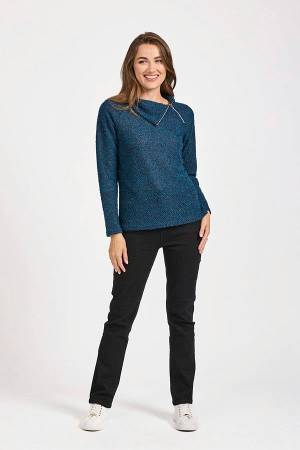 Pair this top with dark denim jeans and ankle boots for a casual weekend look. The zipper neckline allows for versatility—style it fully zipped for a more polished look or slightly unzipped for a relaxed vibe.