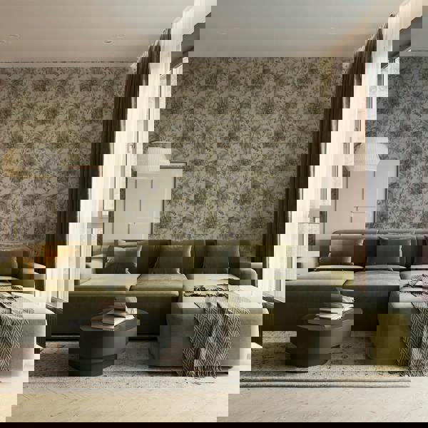 Bali features a stunning tropical textured design in a sage and gold colourway mimicking that of a piece of painted artwork. This durable material showcases layered palm and foliage patterns with a raised, tactile surface that adds depth and visual interest. Its tropical-inspired nature brings a fresh, natural look while maintaining the easy-care benefits and long-lasting performance of high-quality vinyl. This quality is extremely durable and liveable for interiors.