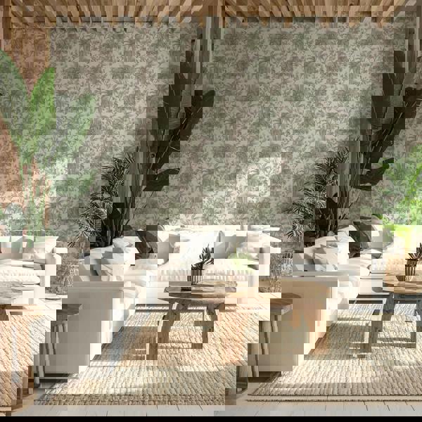 Bali features a stunning tropical textured design in a sage and rose colourway mimicking that of a piece of painted artwork. This durable material showcases layered palm and foliage patterns with a raised, tactile surface that adds depth and visual interest. Its tropical-inspired nature brings a fresh, natural look while maintaining the easy-care benefits and long-lasting performance of high-quality vinyl. This quality is extremely durable and liveable for interiors.