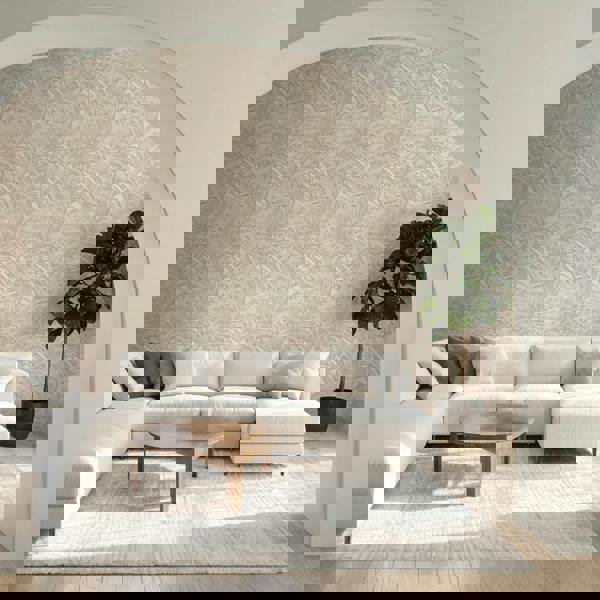 Congo features a striking palm leaf design in a soft pearl colourway that brings a subtle, tropical feel to any space. This heavyweight vinyl is extremely durable and liveable for interiors and for high traffic areas of your home. The palm leaf pattern adds visual movement and a natural, island-inspired aesthetic and the in register embossing creates a beautiful beaded effect.