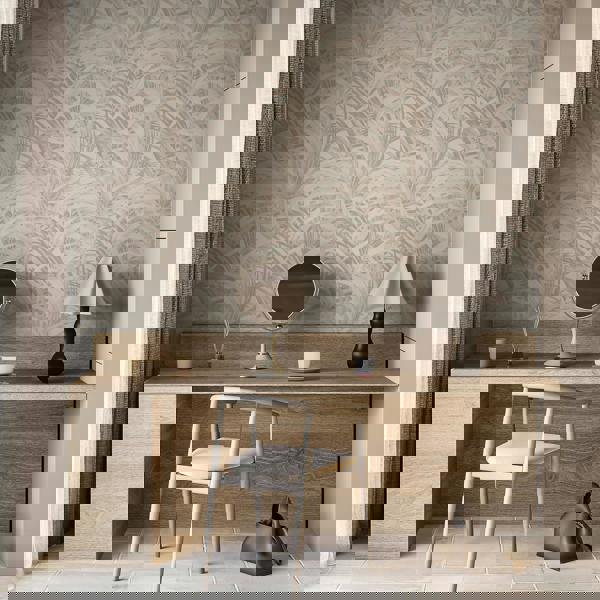 Congo features a striking palm leaf design in a pebble colourway that brings a subtle, tropical feel to any space. This heavyweight vinyl is extremely durable and liveable for interiors and for high traffic areas of your home. The palm leaf pattern adds visual movement and a natural, island-inspired aesthetic and the in register embossing creates a beautiful beaded effect.